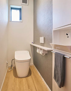 ご両親の寝室に近い1階のトイレは開閉しやすい引き戸を採用。小窓で採光も確保しました。