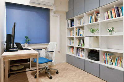ご主人のワークスペースにも壁面収納を設置。たくさんお持ちの書籍も収納場所が決まり、きちんと片付くようになりました。