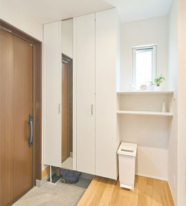 ゴルフバッグも収納できる大容量の玄関収納も新設。