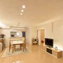 照明を埋め込みタイプにすることで、LDKも玄関ものびやかな空間に仕上がりました。
