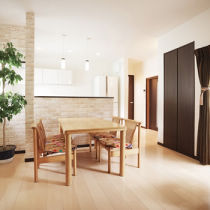 ダイニングとリビングの間の壁を撤去し、広びろLDK空間を創出。抜けない柱はキッチンの腰壁と同柄にして空間のアクセントに。キッチンには、おそうじラクラクのIHクッキングヒーターを採用し、収納も新設。カップボードは身長に合わせて手の届きやすい位置に天袋を配置し、ゴミ箱や米びつの定位置もあらかじめプランに盛り込むなど、奥様への思いやりがいっぱいに詰まったLDKとなりました。