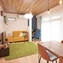 ご家族それぞれが自分のエリアの床や壁、家具などを決められて、個性的な雰囲気ながら住まい全体がまとまりのあるインテリアになりました。