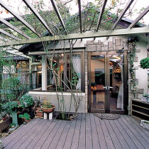 四季折々の景色を楽しめる テラスごしに庭を眺めるカフェリビング。 <2006年度リフ...[埼玉県]