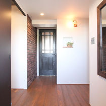 素材の表情が楽しめる玄関 存在感のあるレンガと建具の色合いが印象的[愛知県]
