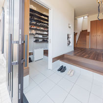 たっぷりの収納で気持ちにも 空間にもゆとりが生まれる玄関。[岐阜県]