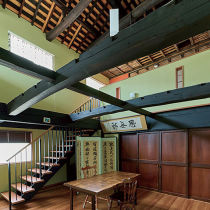 建物の趣をできるだけ残したいというご要望に、大勢の親族が会した馴染み深い二間続きの和室の配置はそのままに、欄間障子は空間のアイコンとして再生。お母様が歩行器でも移動しやすいように、LDKはバリアフリーに配慮した洋室に。梁をあらわにした勾配天井は上方向への新たな表情を生み、柱と梁は塗装して落ち着いた古民家調を実現。
