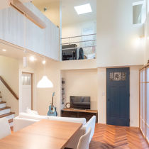 家族全員が気持ちよく住める家にしたいと建替えをされたS様。1.5階、2.5階のあるスキップフロア設計で、開放感あふれる個性豊かな家を実現。室内窓からは優しい風が通り抜け、光あふれるリビングは、家族が自然と集まる心地よいスペースになりました。施工店: リファイン守山 株式会社東和不動産(旧:リファイン守山)