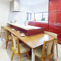 大阪府親戚が集まる機会の多いN様は、もてなすための広く使える空間を要望。既存の和室をいかして、ダイニングとの間に間仕切開閉壁を設置し、開けば広いLDKとしても使えるように変更しました。「親戚などが集まった際には、キッチンにいても話が弾むようになりました。対面キッチンなので配膳もしやすく、とても便利です」とN様も大満足。ダイニング側に付けたニッチ棚もポイントとなり、飾り棚として活躍しています。施工店: 株式会社紀陽 大阪南店(旧:リファイン大美野)