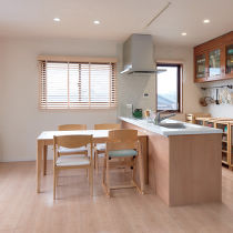 またK様は家族とのつながりを重視し対面キッチンをご希望でしたが、広々としたLDKを実現するためにあえて壁付I型キッチンをご提案。代わりにダイニングテーブルをリビング向きの調理台と一体化させ、会話しやすい配置に。
