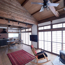 築38年の物件を大胆にリフォーム。高い天井や板張りの壁面、無垢のフローリング、薪ストーブなど、お施主様のこだわりを細部まで形に。ご家族や友人と豊かな時間を過ごすことができる、あたたかみのある空間となりました。施工店: リファイン所沢中央 株式会社吉祥リビング(旧:リファイン所沢中央)