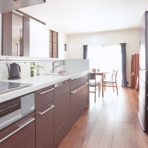 お子様たちの成長に伴い、ものが増え、手狭に感じるようになったキッチンやリビング。S様は「リフォームによってスッキリさせたい」とお考えでした。間仕切り壁や垂れ壁を取り除いてスッキリとしたLDKには、収納量たっぷりのキッチンを導入。対面カウンターは「作業スペースが広くて、お菓子作りにとっても便利」とお嬢様もうれしそうです。また、カウンター下の収納部分は入れるものがきっちり収まるように、オリジナル仕様でつくりました。スッキリして広くなったリビングやキッチンで、ご家族で過ごす時間を楽しまれる毎日です。施工店: リファイン瀬田 株式会社エルアイシー(旧:リファイン瀬田)
