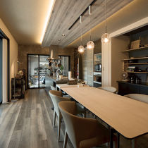 N様は夫婦ふたりが心地よく過ごせるようにと、アイランドキッチンのある住まいに全面リフォーム。ウッディで、モダンなスタイリッシュ空間に一新した広々LDKで、ご夫婦の会話も弾みます。施工店: 杜プラス 株式会社協和木材(旧:リファイン春日)