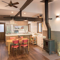 夫婦ふたりの時間をゆったりとしたものにしたいとリフォームをされたU様。使われていなかった8畳の和室をコンパクトにし、囲炉裏のように囲んで使えるキッチンを中心とした居心地のよいLDKが完成。気にされていた風通しも、大きく開閉できる扉によって改善されました。施工店: 株式会社椎葉工務店(旧:リファイン枚方市民病院前)