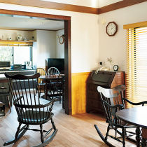 型にはまったプランでなく、自分らしいスタイルで暮らせるようにと考えられたH様。そのために新築でも賃貸でもなく、中古住宅を買ってリフォームするという方法を選ばれました。そうして見つけた築27年の家は、1階が台所、居間、和室2室というひと昔前の間取り。「夫婦でほっこりできる空間に」という夢をかなえるため、間取りから空間を再構築し、自分たちらしさを追求することに挑戦しました。まず、冬の寒さに備えて壁・床・天井の断熱材を入れ替え、窓も断熱サッシへと変更して、基本性能をアップ。ゆったりと過ごすためには広い空間が必要と考え、独立した台所の壁を撤去してリビングとつなげ、和室は畳コーナーに姿を変えながら、リビング空間に取り込みました。キッチンから畳コーナーまでがL字型につながる、広いのびやかなLDK。その畳コーナーには藍色、パソコンコーナーにはレッドの壁紙を選んで、さらに個性的に。テレビで見た藍染め紙を壁に貼った和室が一目で気に入り、「和室は藍色」と決められていたそう。提案された様々なカラーバリエーションの中から選んだのが、北海道の自然を思わせる落ち着いた色の組み合わせでした。「設計者が主張しすぎず、私らしさを引き出してくれました。中古リフォームならではの高い自由度で実現した広い空間は、居心地がよいですよ」と話されています。施工店: 笹木産業株式会社(旧:リファイン滝川中央)