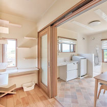 犬と暮らすY様ご夫婦と、新たに家族に加った猫もストレスなく過ごせるようペット専用のワンルームを増築。犬と猫の行動範囲の違いに配慮した「ゾーン分け」の空間設計によって、心地よく共存できる住まいになりました。施工店: リファイン緑丘 株式会社丸豊住宅(旧:リファイン緑丘)