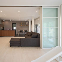 娘さん2人の成長に伴って、LDの狭さや収納の使いにくさが気になり始めたH様。リビングの隣にあった部屋の壁を取り払い、家族がゆったり過ごせる20帖のリビングを手に入れました。また、用途に困っていた多目的室には家族全員分の洋服がしまえるクローゼットを設え、子ども専用の遊び場に。リビングからもお子さんたちの様子がわかるようにガラスの建具にして、光や視線が抜ける明るい空間に仕上げました。施工店: 株式会社マルナカホーム リノベーション事業部