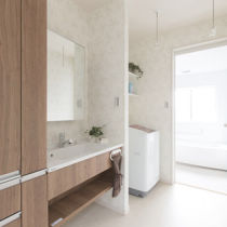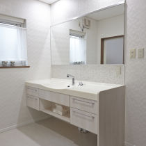 孫たちにも喜んで過ごしてもらえる明るくて広い洗面、バスルーム。[大阪府]