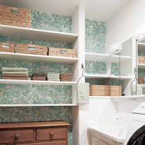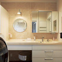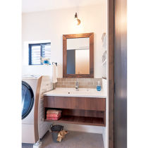 お手入れ簡単浴室と保温浴槽。室調湿効果を考えた少しレトロな雰囲気を持つ洗面所[千葉県]