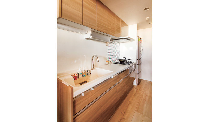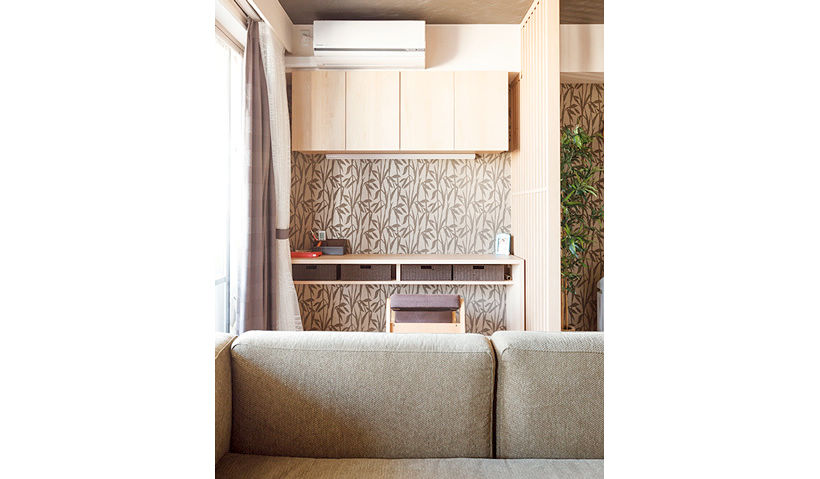 娘さん2人の成長に伴って、LDの狭さや収納の使いにくさが気になり始めたH様。リビングの隣にあった部屋の壁を取り払い、家族がゆったり過ごせる20帖のリビングを手に入れました。また、用途に困っていた多目的室には家族全員分の洋服がしまえるクローゼットを設え、子ども専用の遊び場に。リビングからもお子さんたちの様子がわかるようにガラスの建具にして、光や視線が抜ける明るい空間に仕上げました。