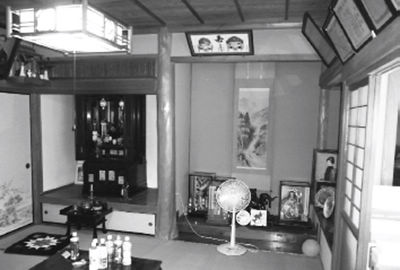 アフター:既存の和室2部屋と廊下、縁側部分を一体にして家族が集う広いLDKに一新。太い柱や梁はそのままいかし、かつての面影を残して。明るい仏間空間も工夫のひとつ。