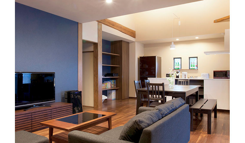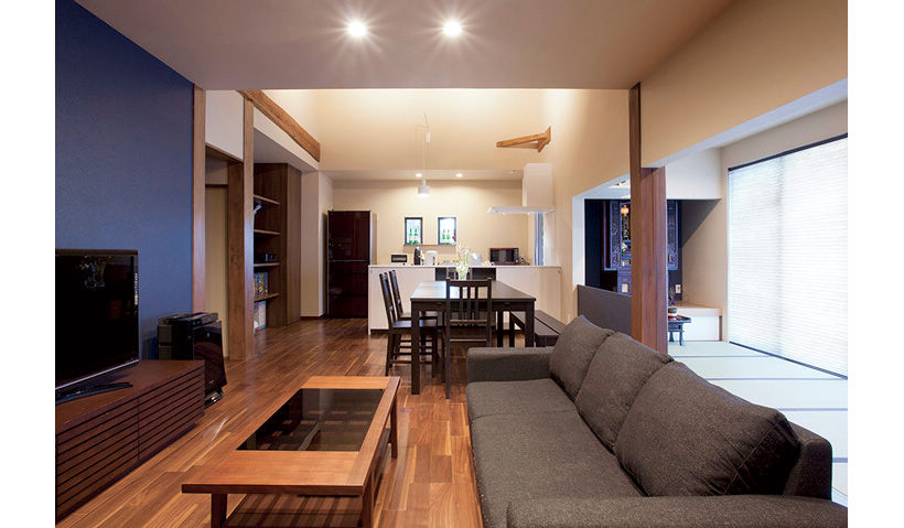坂道 敏彦 家族全員が集える空間の確保、トイレや洗面の増設など大家族の暮らしを考えた間取りに。広い空間の寒さ対策に床下断熱材、複層ガラスなどを施しています。