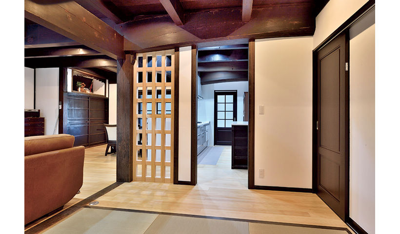 瀬尾 司 古民家の雰囲気を損なわないよう柱や梁などできるだけ再利用するとともに、ガラス瓦で採光を取り、床を無垢材にするなどし、明るさを演出することを心がけました。