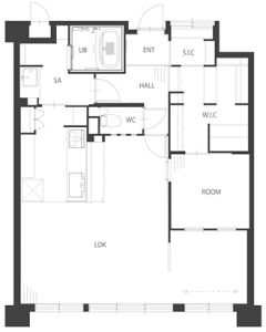 アフター:間取りは1LDK 一番のこだわりはリビングの広さ 寝室からウォークインクローゼットとシューズクローゼット、キッチンから洗面など動線を考えた収納計画をしました