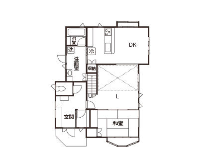 アフター:キッチンから目に入るよう、リビングとダイニングの間に新しく壁を設けて民芸家具の食器棚を配置。
