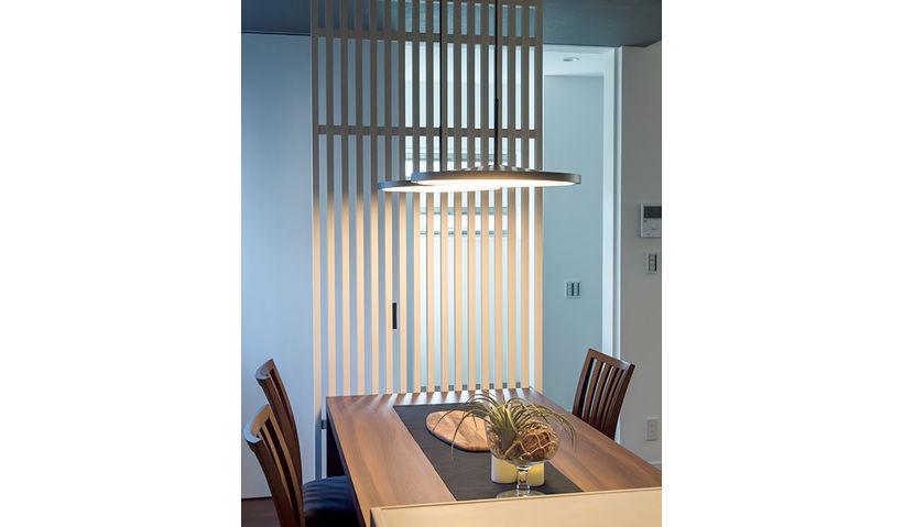 佐藤 卓之 細かい間取りを一体化して大リビングに。構造的にどうしても残さなくてはいけない柱を利用して、最適な場所に収納を設置しました。ご家族でよくリゾート地へ出かけられるというお話から、床や壁のカラーコーディネイトや素材を工夫し、オリエンタルな雰囲気を演出しました。